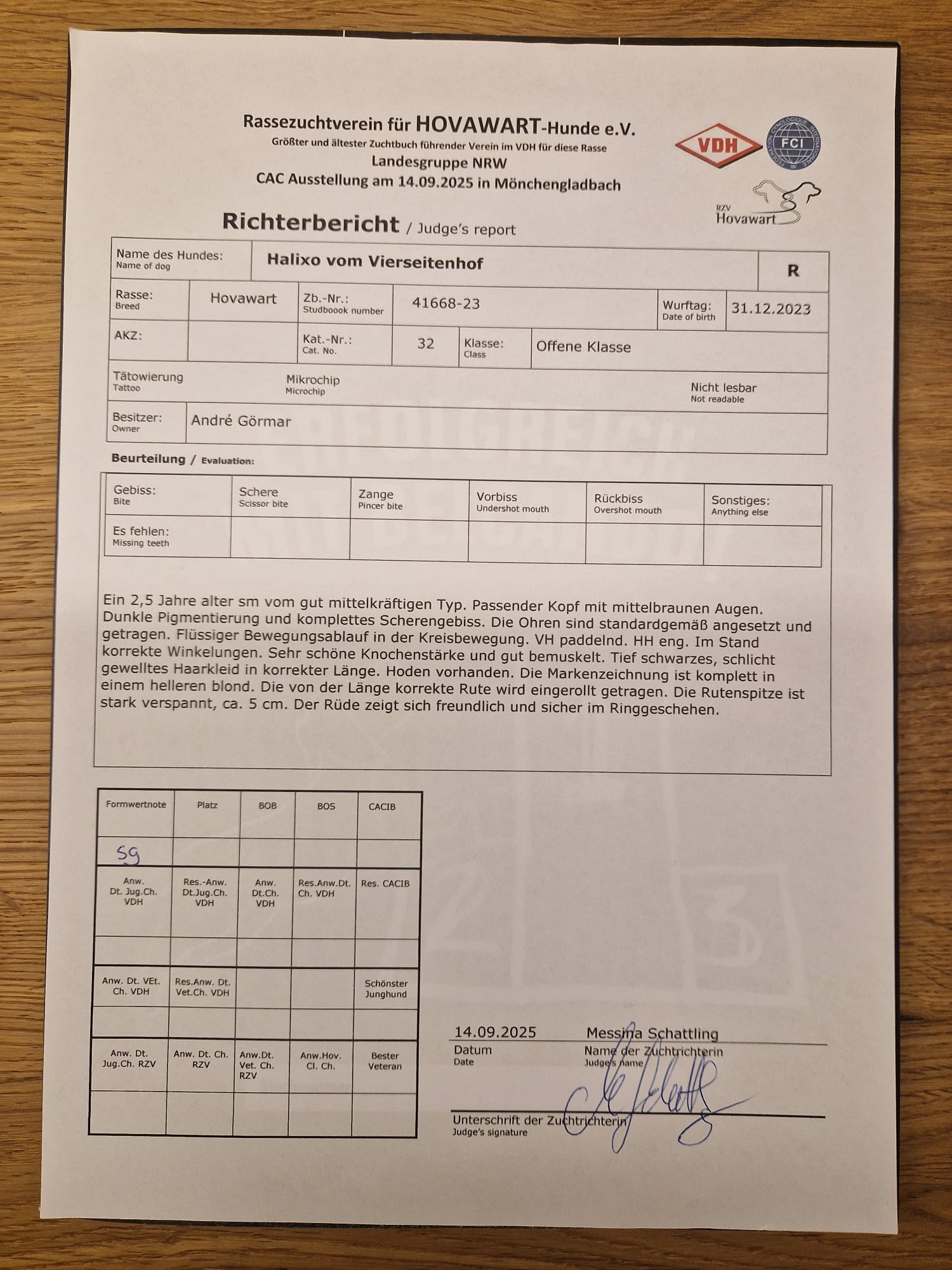 Auf dem Hundeplatz Mönchengladbach fand am 14.9.die Ausstellung statt. Messina Schattling richtete und vergab an lixo ein gutes SG.er hat ihr sehr gefallen!